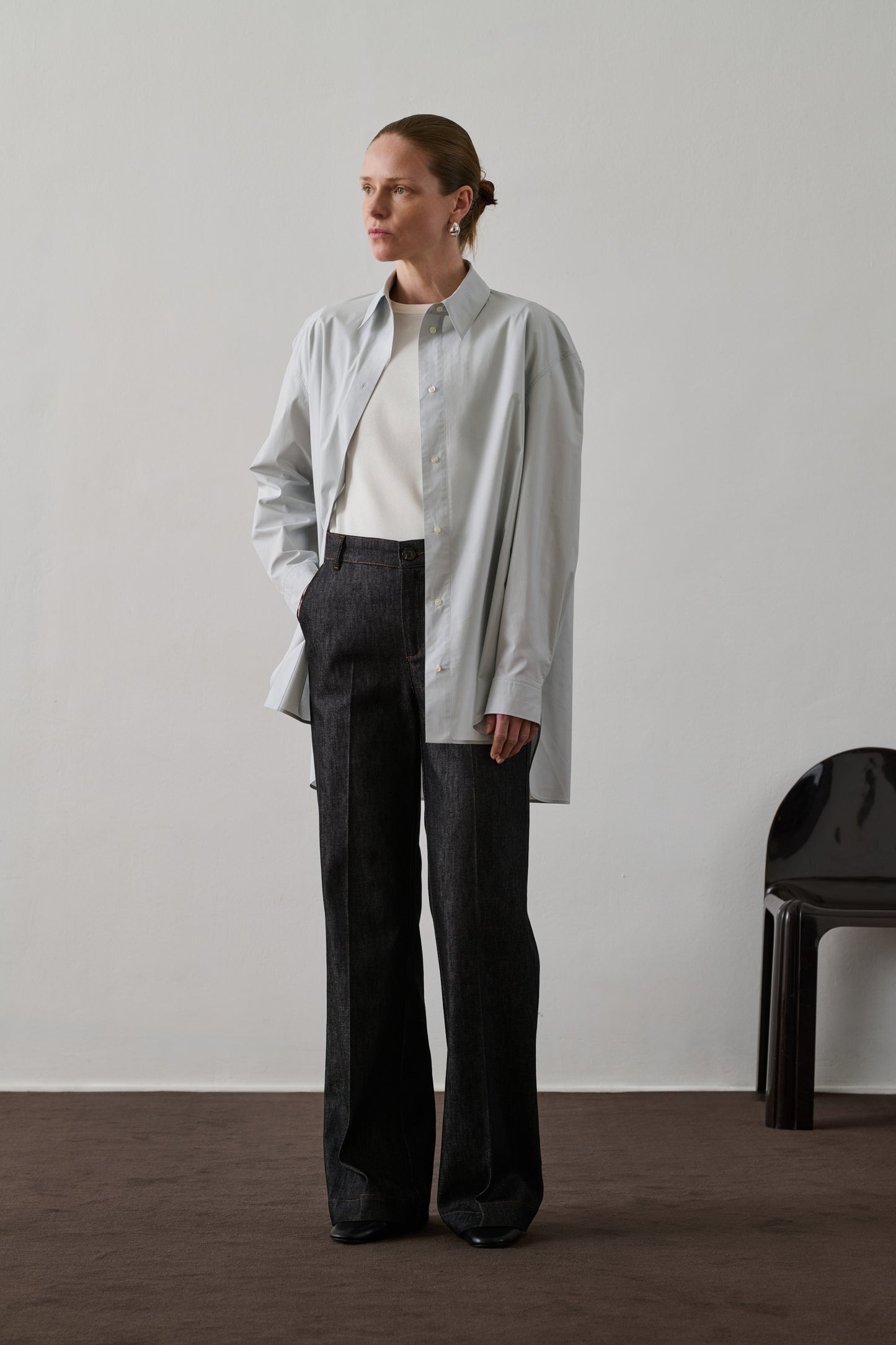CALIFORNIA is a timeless piece from the Sœur wardrobe, featuring wide, flared Jeans. It has a high waist that enhances a feminine, elongated silhouette.